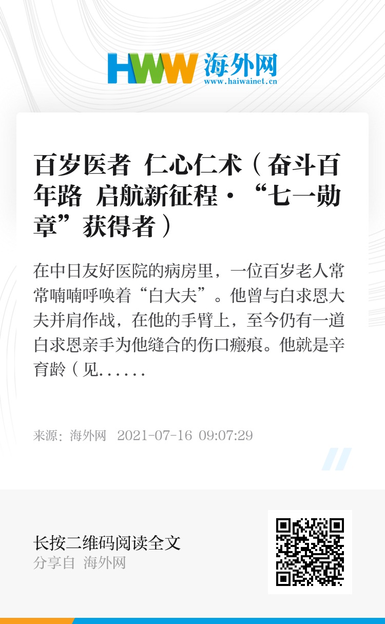 在中日友好医院的病房里,一位百岁老人常常喃喃呼唤着“白大夫”。他曾与白求恩大夫并肩作战,在他的手臂上,至今仍有一道白求恩亲手为他缝合的伤口瘢痕。