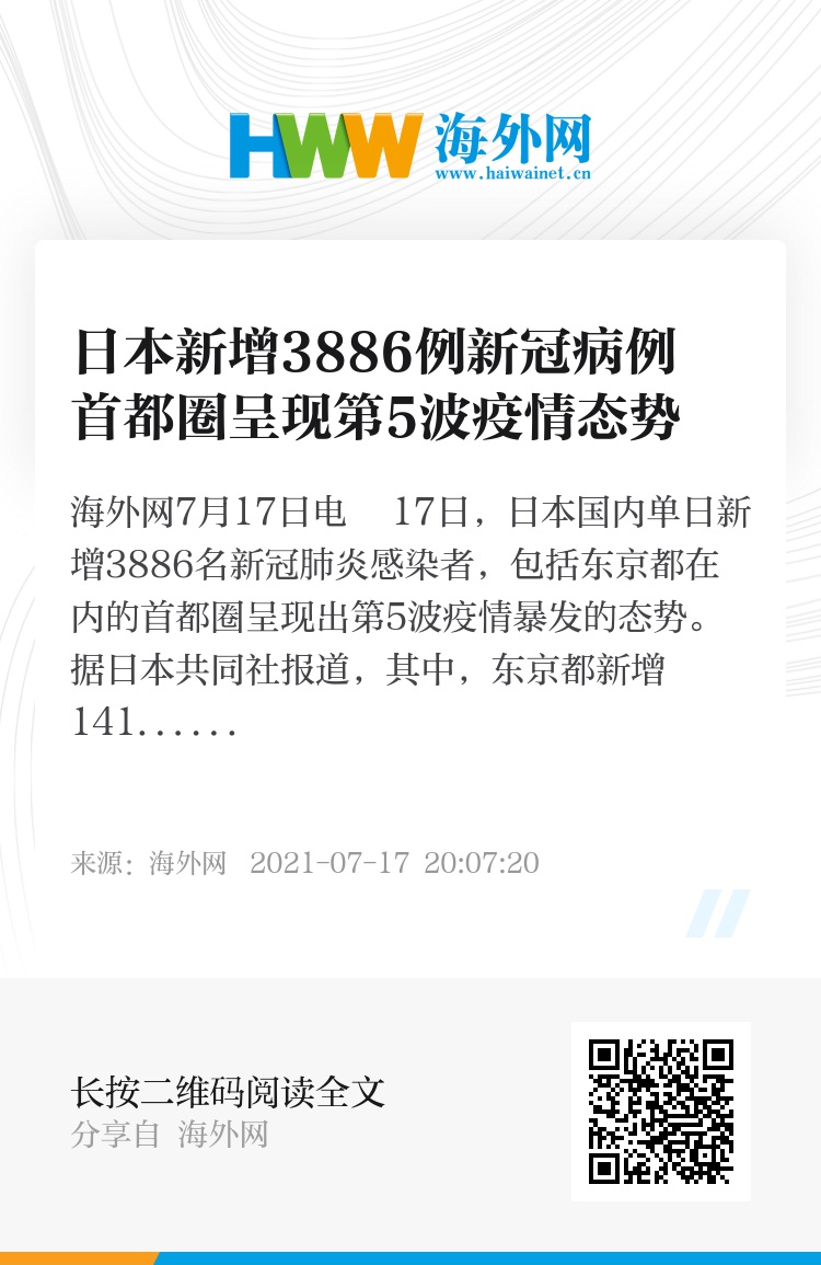 海外网7月17日电 17日,日本国内单日新增3886名新冠肺炎感染者,包括东京都在内的首都圈呈现出第5波疫情暴发的态势。