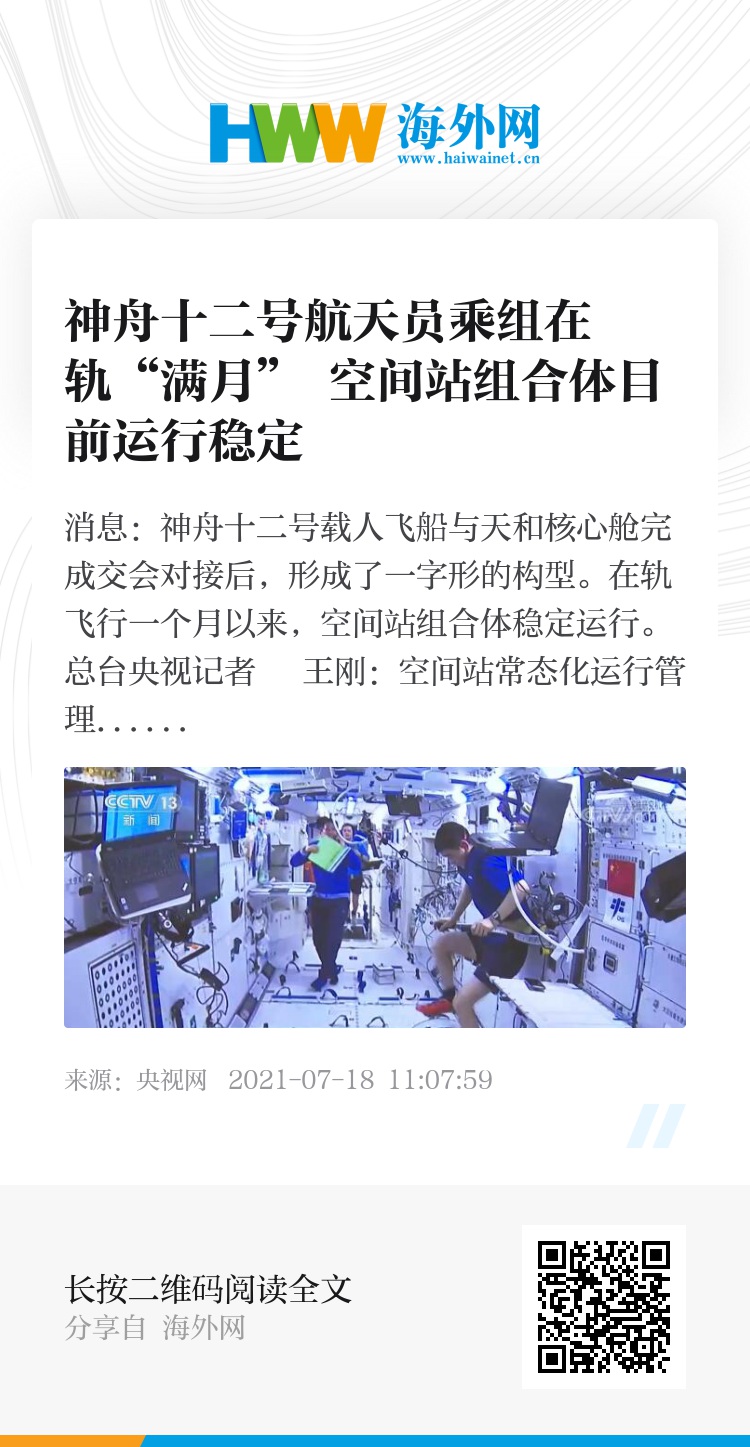 航天员进驻一个月以来,工作生活顺利,各系统相互协同完成了交会对接、推进剂补加、航天员出舱等任务,在轨验证了大型组合体控制、组装建造以及舱外维修等关键技术。