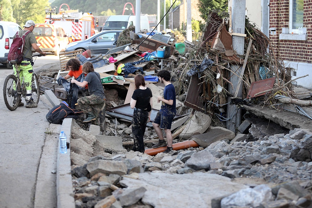 2021年7月18日,欧洲多国遭遇暴雨洪灾,部分街道被淹,有房屋建筑受损,给民众出行交通带来不便。图源:视觉中国