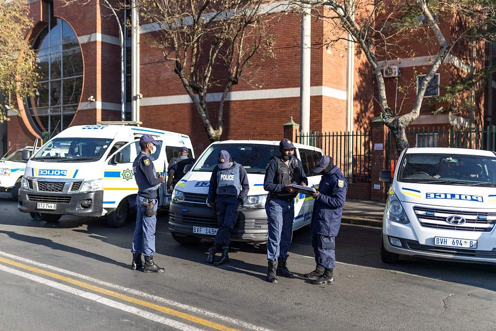 当地时间2021年7月19日,南非彼得马里茨堡,南非国防军士兵在治安和高等法院附近巡逻,南非前总统祖马涉贪腐案审理于当日恢复。19日的听证会以线上形式进行,目的是防止爆发抗议行动,但在法院四周依旧布置严格的警卫,因为此地此前曾聚集大量祖马支持者示威。图源:人民视觉