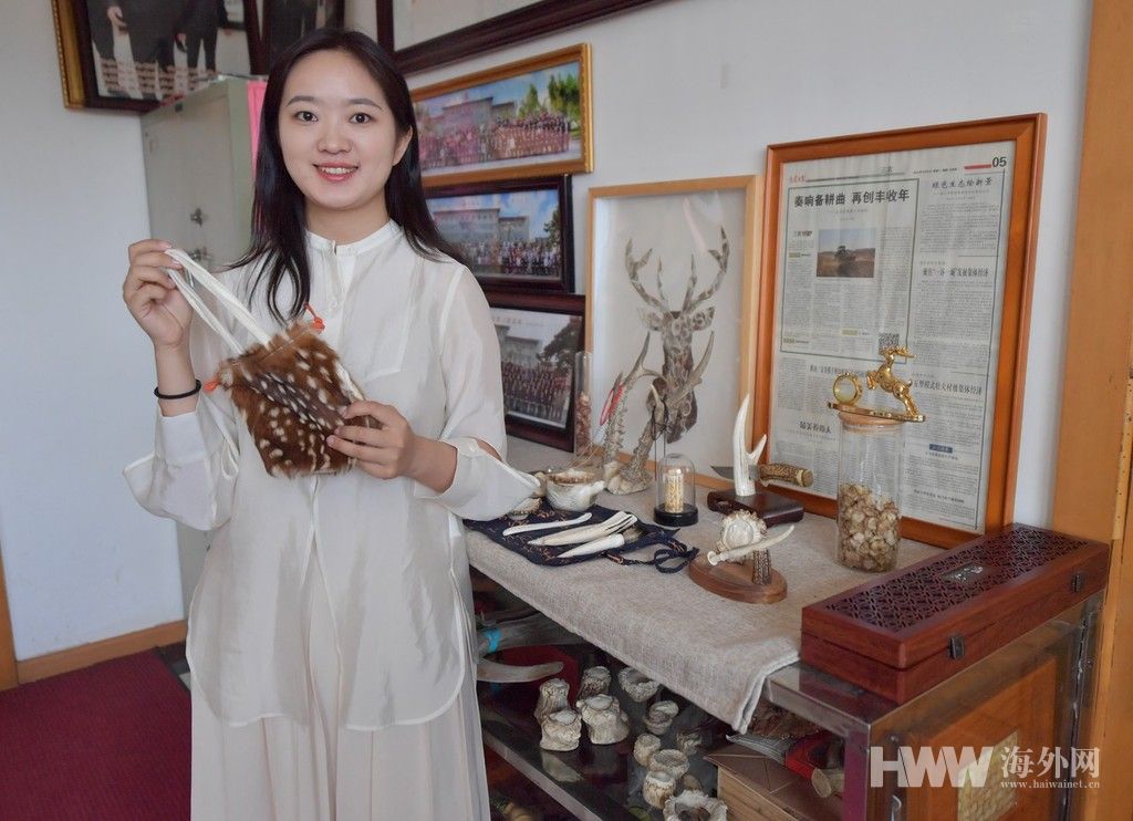 7月20日,吉林省长春市双阳区,李嘉榕展示文创产品。“95后”吉林姑娘李嘉榕大学毕业后返乡创业,在父辈的梅花鹿养殖产业的基础上发展电商经济,走出了一条以新媒体为载体、以助力鹿产业振兴为重点的特色发展之路。 中新社记者 张瑶 摄