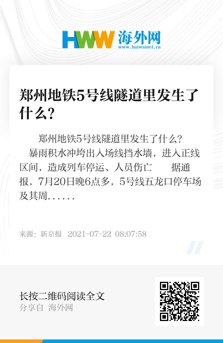 车厢内,洪水已经齐胸,车窗外,洪流滚滚而过……7月20日晚,有关郑州地铁5号线积水事件的多段视频,令无数人揪心。