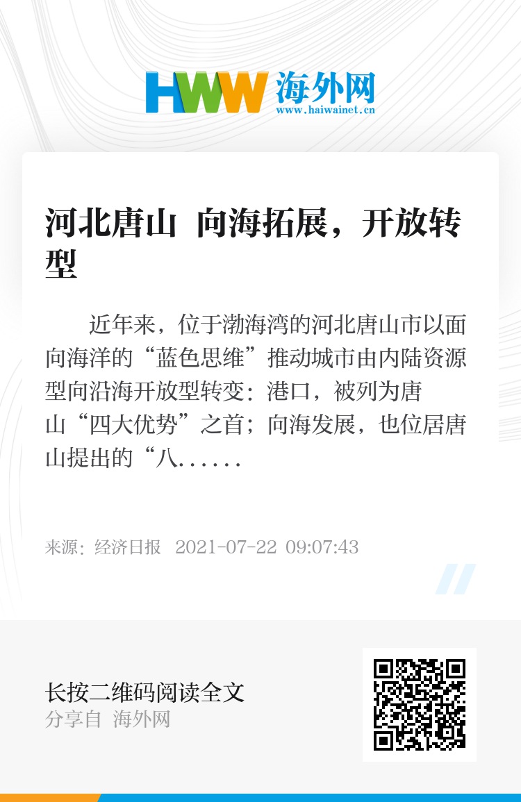 近年来,位于渤海湾的河北唐山市以面向海洋的“蓝色思维”推动城市由内陆资源型向沿海开放型转变:港口,被列为唐山“四大优势”之首;向海发展,也位居唐山提出的“八个发展”首位;海洋产业与精品钢铁、现代商贸物流、高端装备制造一起,被确定为唐山四大支柱产业。