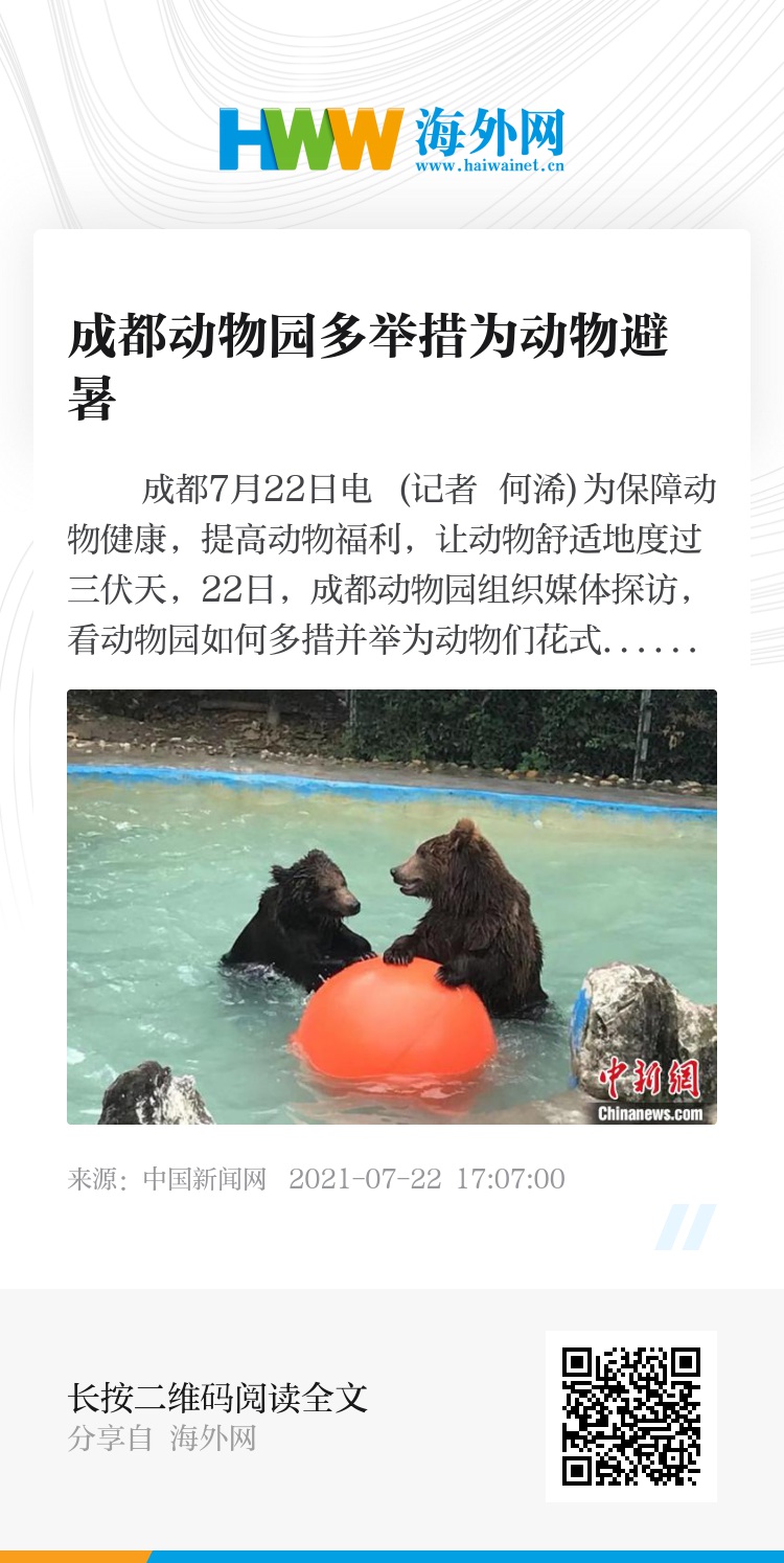 中新网成都7月22日电 (记者 何浠)为保障动物健康,提高动物福利,让动物舒适地度过三伏天,22日,成都动物园组织媒体探访,看动物园如何多措并举为动物们花式避暑。
