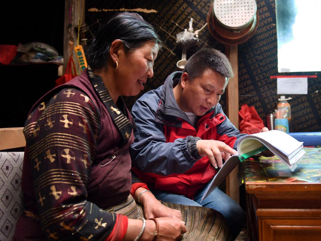 西藏山南市社保工作人员在隆子县玉麦乡玉麦村村民央宗家中进行社保信息补充登记。新华社记者 晋美多吉 摄