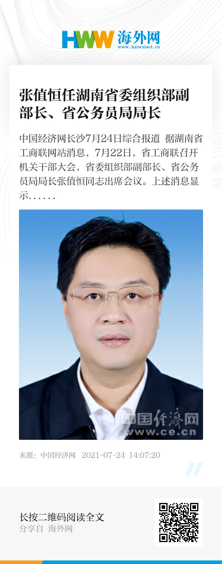 上述消息显示,张值恒已任湖南省委组织部副部长、省公务员局局长。