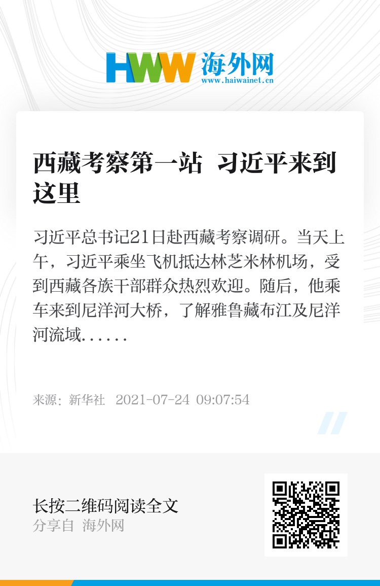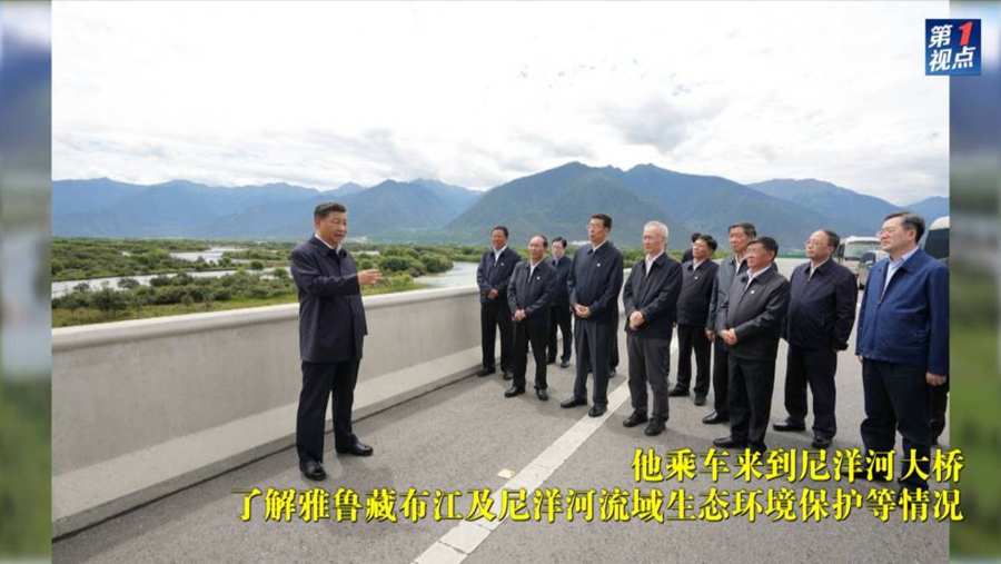 习近平总书记21日赴西藏考察调研。当天上午,习近平乘坐飞机抵达林芝米林机场,受到西藏各族干部群众热烈欢迎。随后,他乘车来到尼洋河大桥,了解雅鲁藏布江及尼洋河流域生态环境保护等情况。