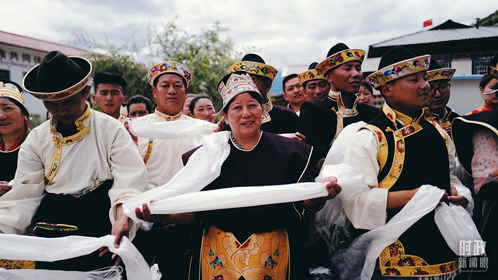 △总书记到访当天,嘎拉村村民手捧哈达,聚拢街旁。(总台央视记者彭汉明拍摄)
