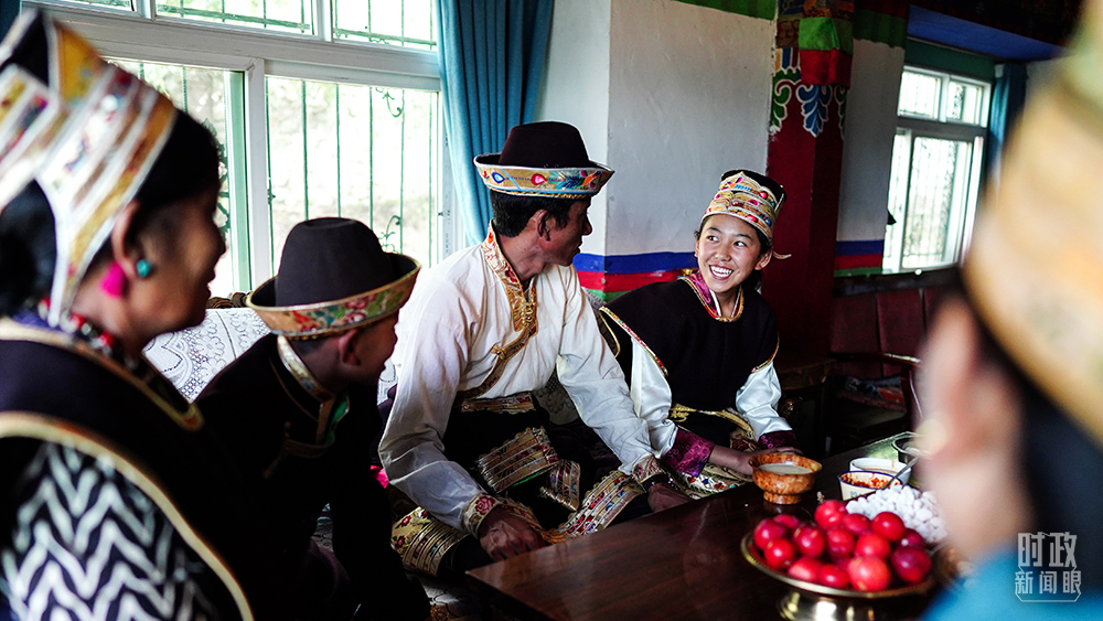 △嘎拉村村民达瓦坚参(左三)一家。7月21日下午,总书记来到他的家中做客。(总台国广记者李晋拍摄)