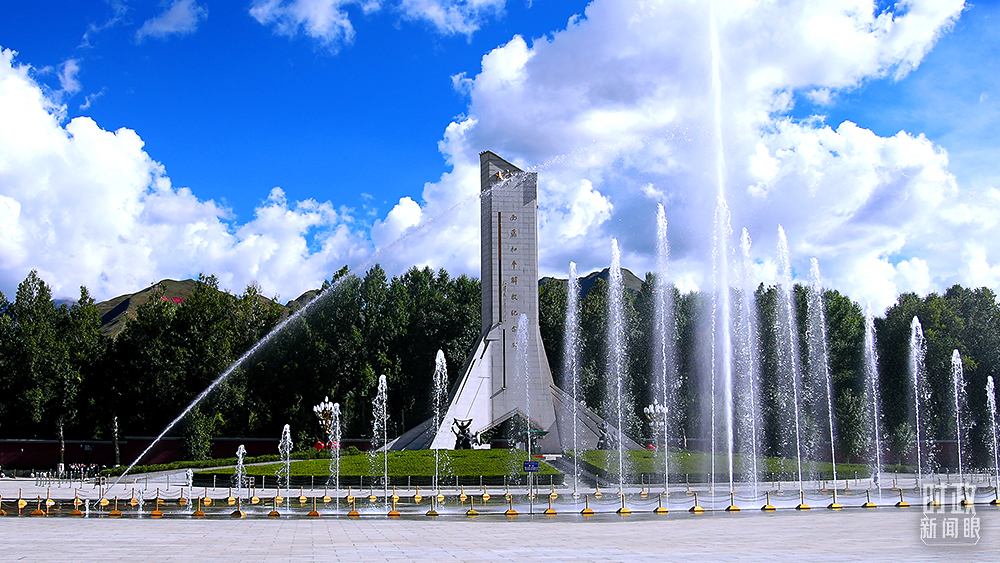 △2001年5月,西藏和平解放纪念碑建成,坐落于布达拉宫广场南端。(总台央视记者张宇拍摄)
