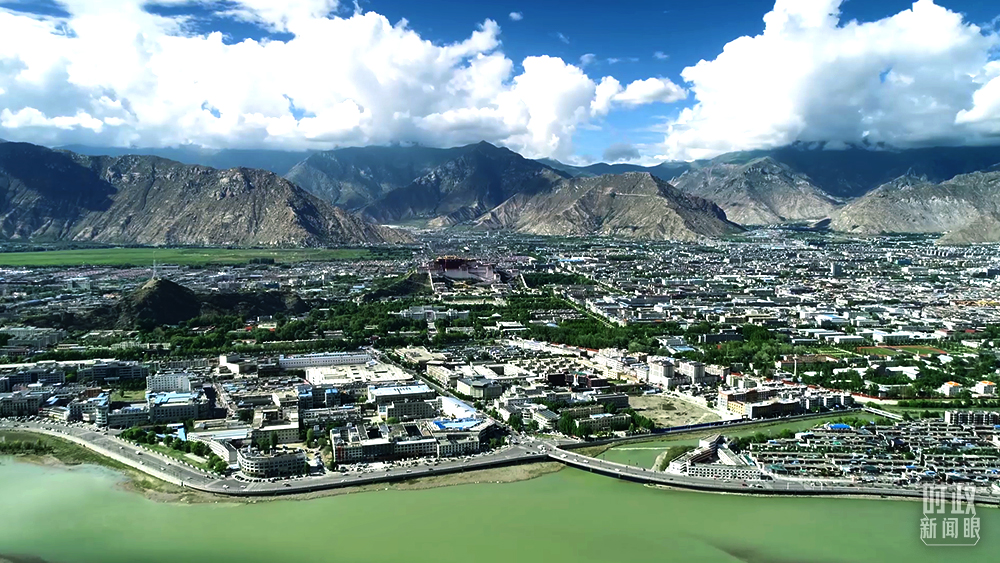 △拉萨城区,翡翠色的拉萨河静静淌过。(总台记者李旭拍摄)