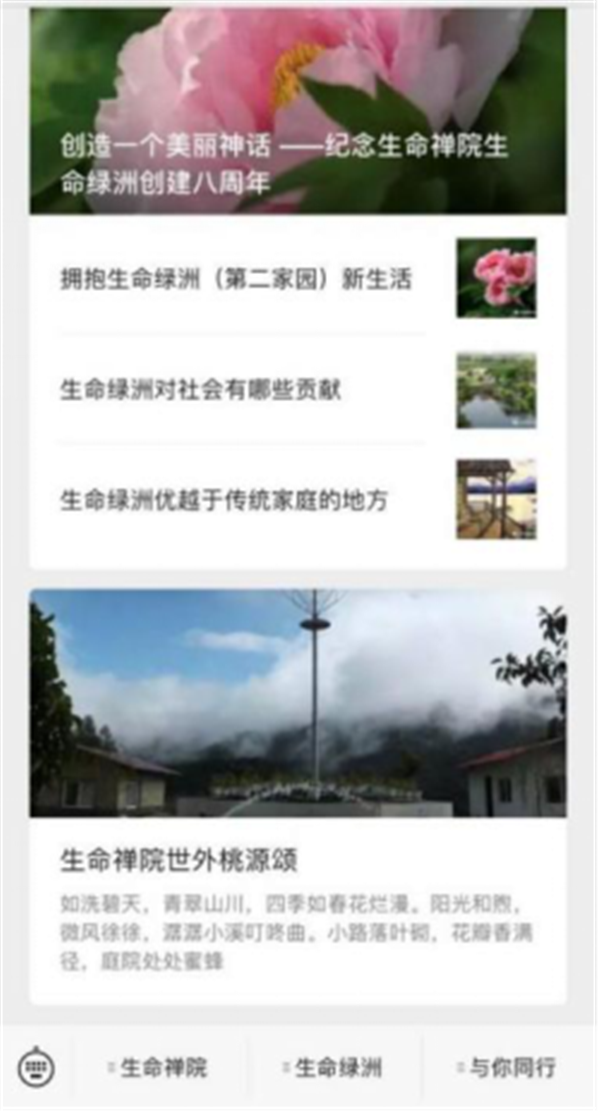 “生命禅院”宣扬其歪理邪说的微信公众号