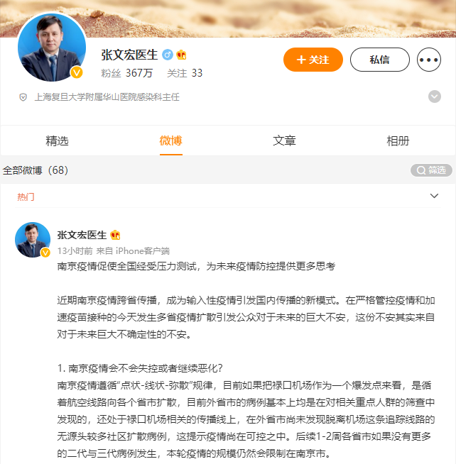 张文宏医生微博截图