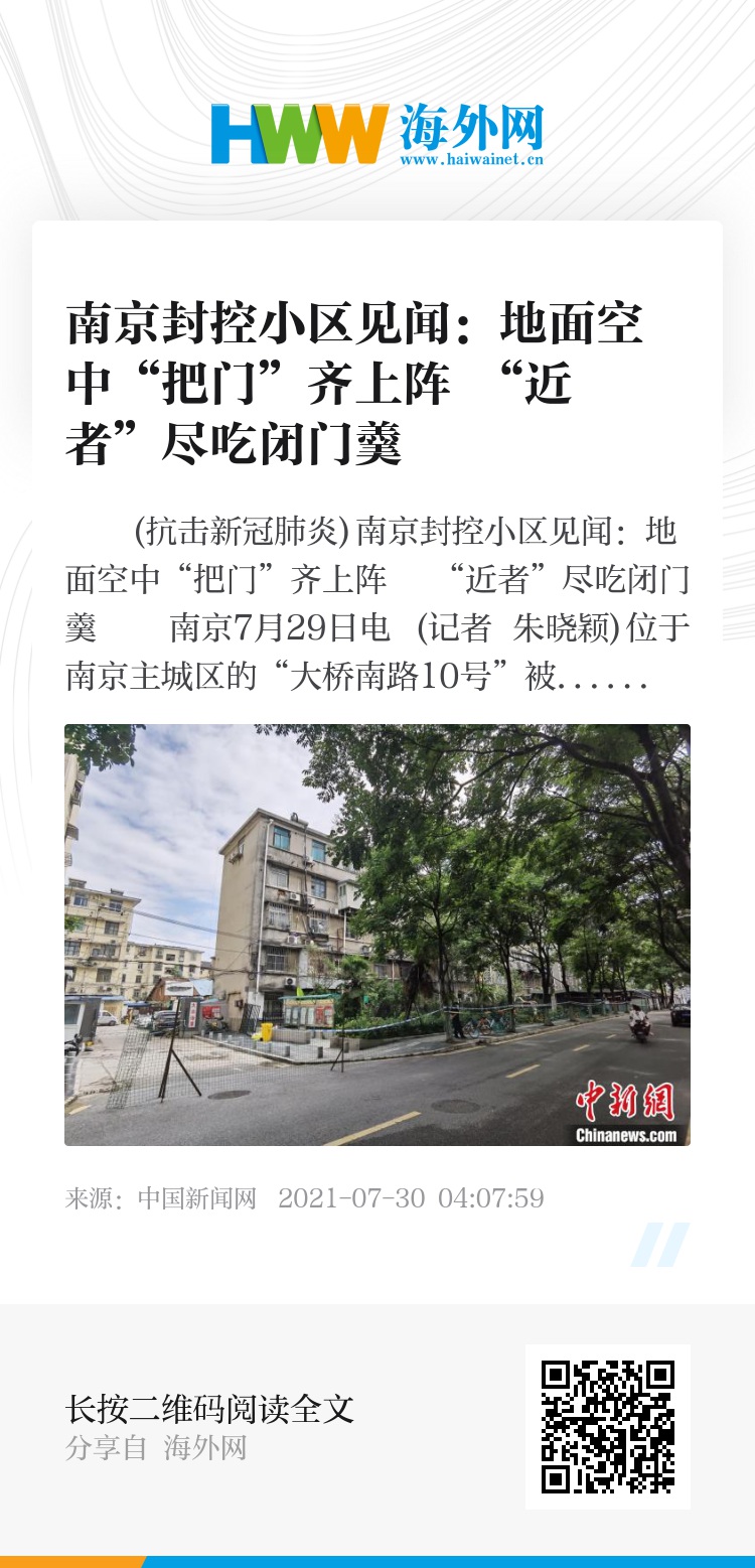 (抗击新冠肺炎)南京封控小区见闻:地面空中“把门”齐上阵 “近者”尽吃闭门羹