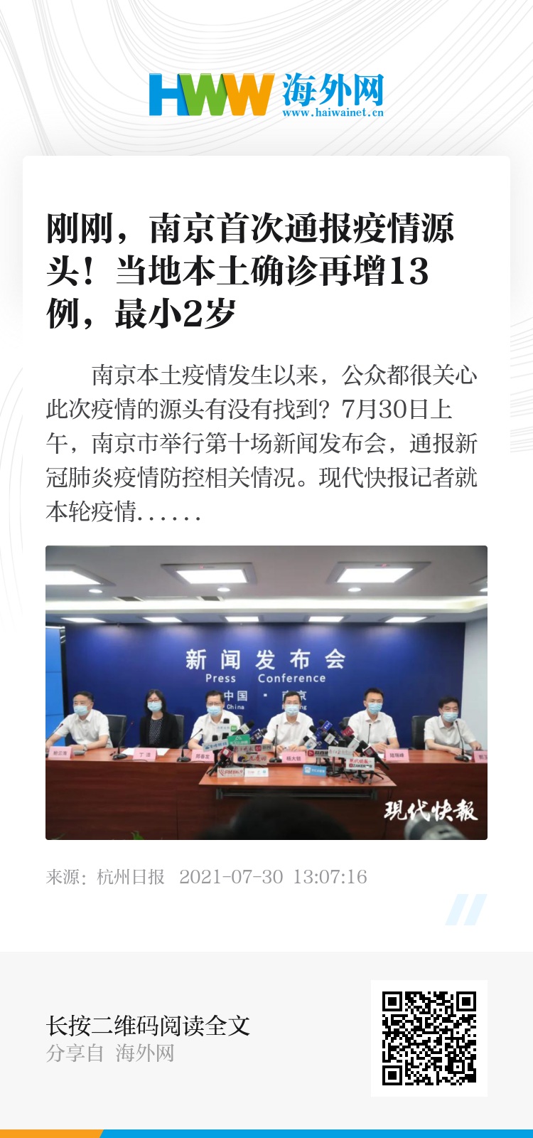 2021年7月29日0-24时,南京新增新型冠状病毒肺炎本土确诊病例13例(其中含1例无症状感染者转确诊),无新增无症状感染者;新增本土确诊病例中,轻型10例、普通型3例。有1例确诊病例由普通型转为重型,6例由轻型转为普通型。
