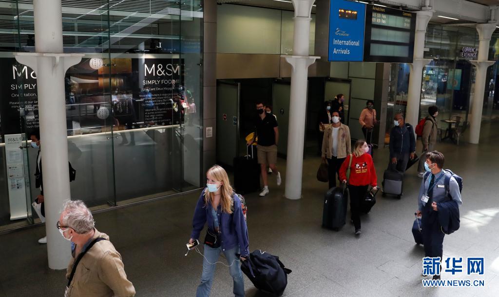 7月29日,“欧洲之星”列车旅客抵达英国伦敦的圣潘克拉斯国际火车站。英国政府官员28日宣布,英国8月2日起将允许美国和欧洲联盟部分国家已完成新冠疫苗接种的公民免隔离进入英格兰地区。新华社记者 韩岩 摄