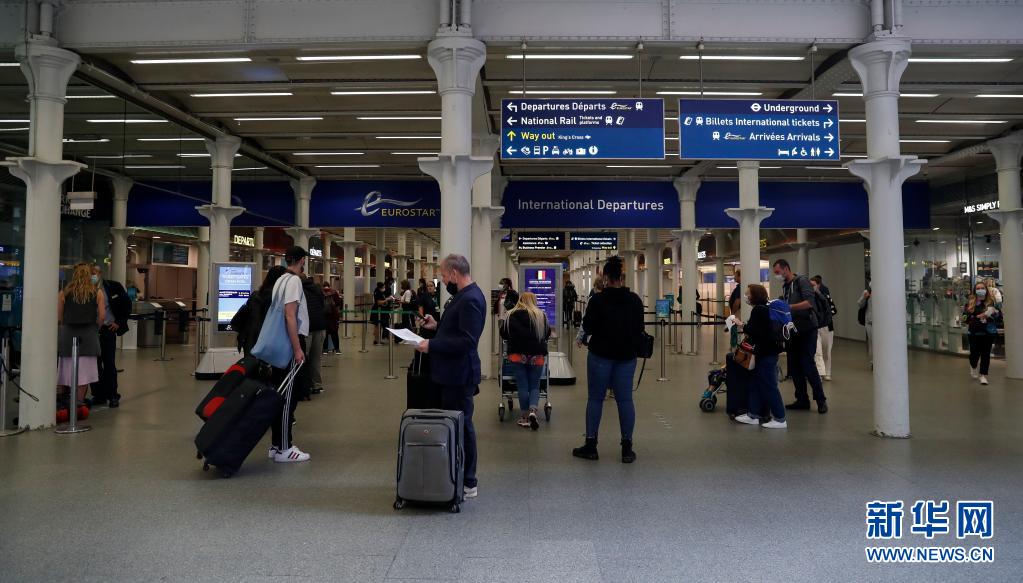 7月29日,旅客在英国伦敦的圣潘克拉斯国际火车站等候乘坐“欧洲之星”列车。英国政府官员28日宣布,英国8月2日起将允许美国和欧洲联盟部分国家已完成新冠疫苗接种的公民免隔离进入英格兰地区。新华社记者 韩岩 摄