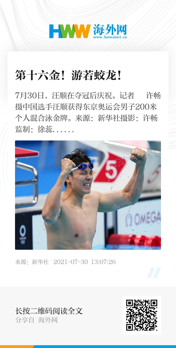 中国选手汪顺获得东京奥运会男子200米个人混合泳金牌。