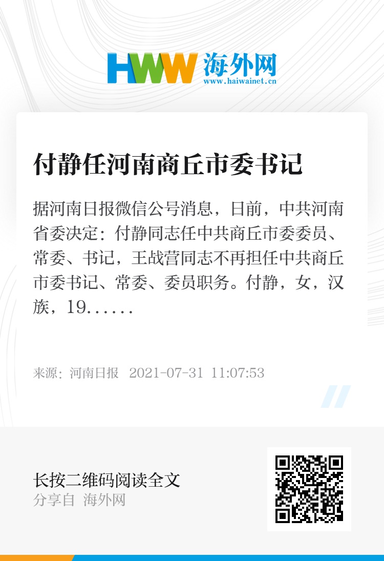 付静同志任中共商丘市委委员、常委、书记,王战营同志不再担任中共商丘市委书记、常委、委员职务。
