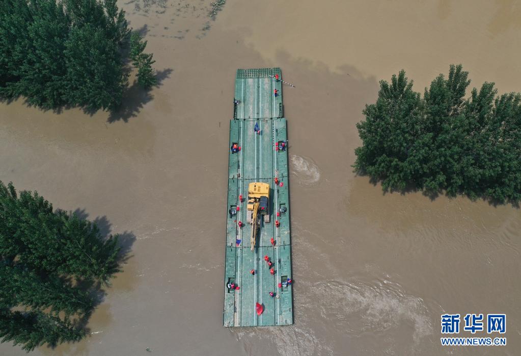 这是7月24日拍摄的参加封堵决口的中国安能应急动力舟桥(无人机照片)。新华社记者 张浩然 摄