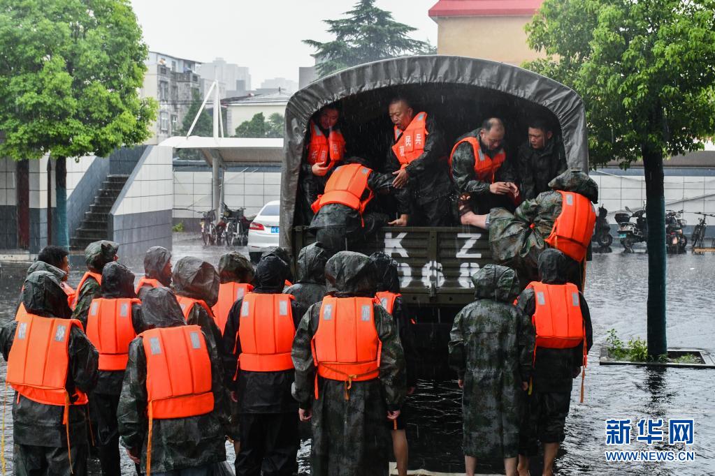 在河南省长葛市大周镇,空军某汽车运输团协助转运民兵投入防汛救灾一线(7月21日摄)。新华社发(于皓 摄)
