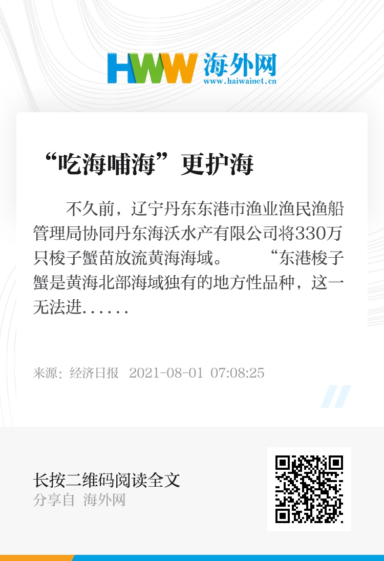 不久前,辽宁丹东东港市渔业渔民渔船管理局协同丹东海沃水产有限公司将330万只梭子蟹苗放流黄海海域。