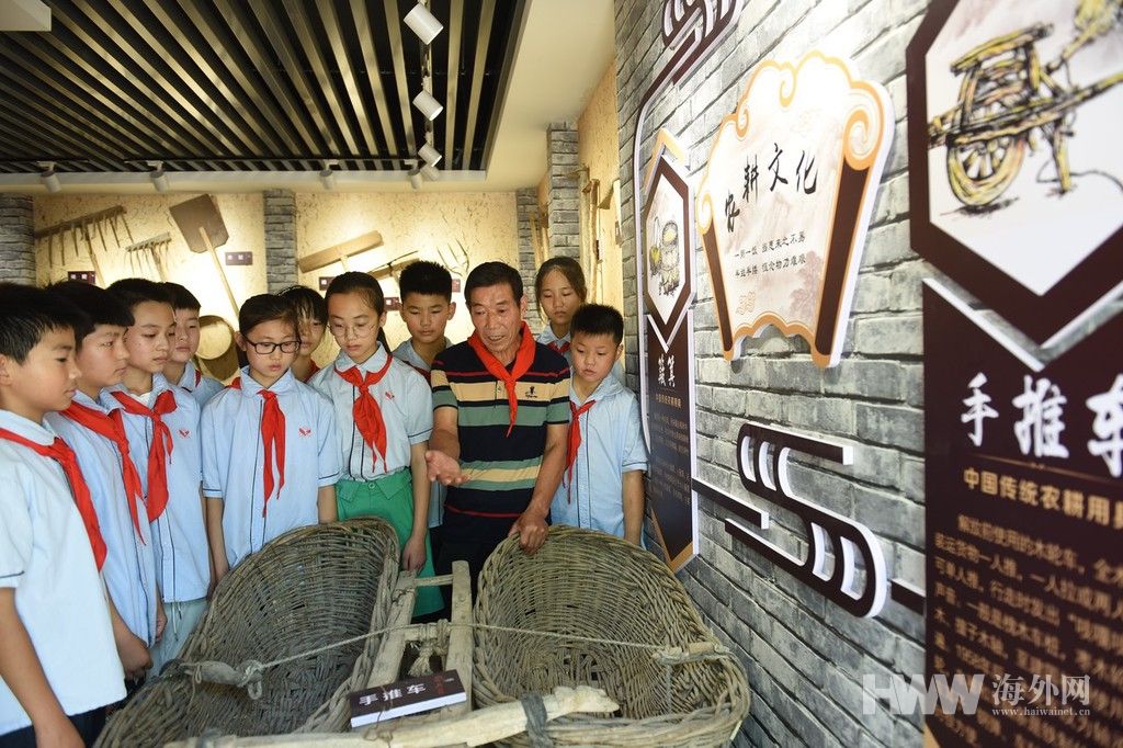 2021年8月1日,江苏省连云港市东海县石榴街道办中心小学留守儿童学生们正在“抗战老人”杨凤鸣事迹陈列室接受红色革命思想教育。暑假期间,江苏省连云港市东海县开展了“弘扬红色精神、共度红色暑假”的主题教育活动,组织留守儿童学生们利用革命老区丰富的德育资源,造访革命老人,听讲红色故事,参观红色遗址等,激发留守儿童学生们爱国之情,树立报国之志,让留守儿童学生们度过一个有特殊意义的红色暑假。(供图:东方IC)