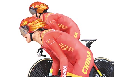 中国队在预赛中骑出32秒135的成绩,排在8支队伍第二位,顺利晋级第一轮。此后,钟天使和鲍珊菊以31秒804打破中国队自己保持的32秒034的该项目世界纪录,挺进决赛。