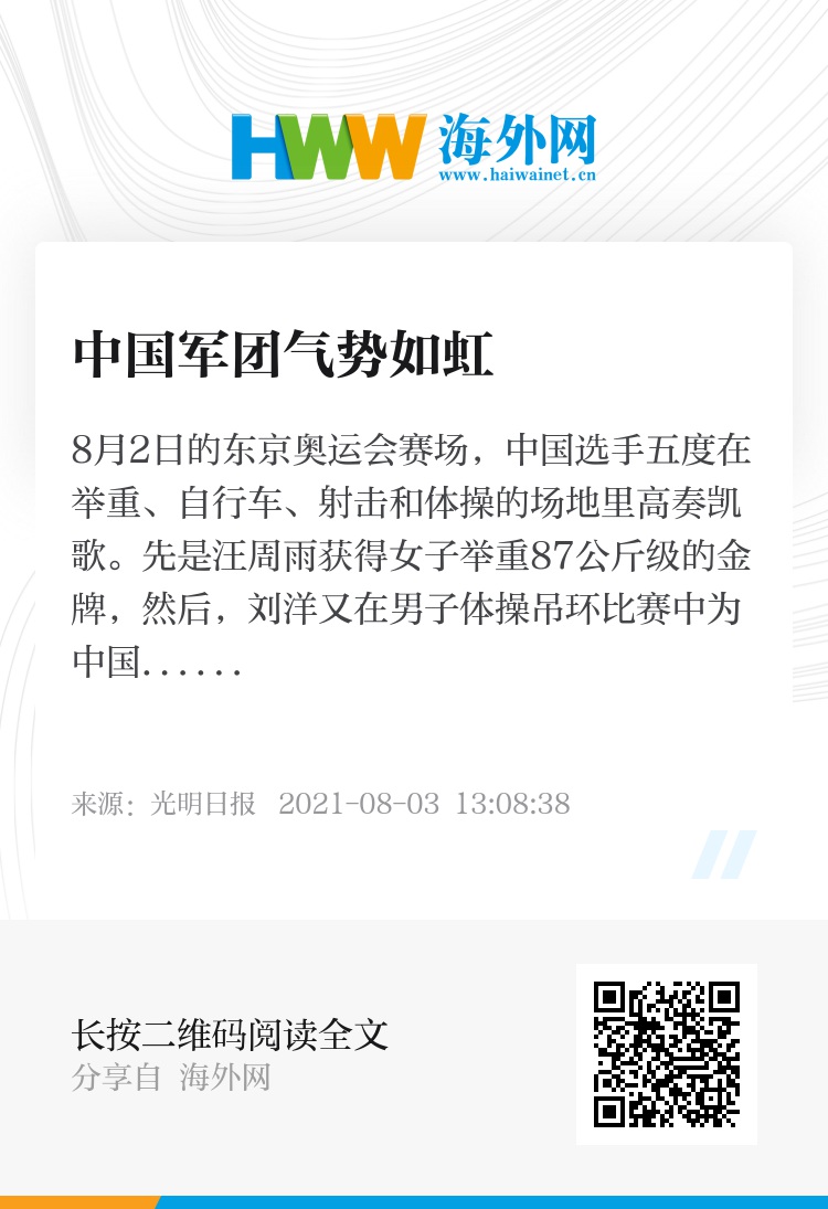 8月2日的东京奥运会赛场,中国选手五度在举重、自行车、射击和体操的场地里高奏凯歌。先是汪周雨获得女子举重87公斤级的金牌,然后,刘洋又在男子体操吊环比赛中为中国体操队夺得唯一金牌。紧接着,年轻小将张常鸿勇夺男子50米步枪三姿金牌,并打破该项目的世界纪录。随后,由钟天使和鲍珊菊组成的中国队在伊豆赛车场进行的场地自行车女子团体竞速赛卫冕成功,在半决赛中,她们还打破了世界纪录。到了晚上,李雯雯在女子87公斤以上级的举重比赛中轻松夺冠,从而使中国军团在本届奥运会上的金牌总数达到29枚。在比赛还剩六天的时间里,金牌总数已经超过上届里约奥运会的26枚。