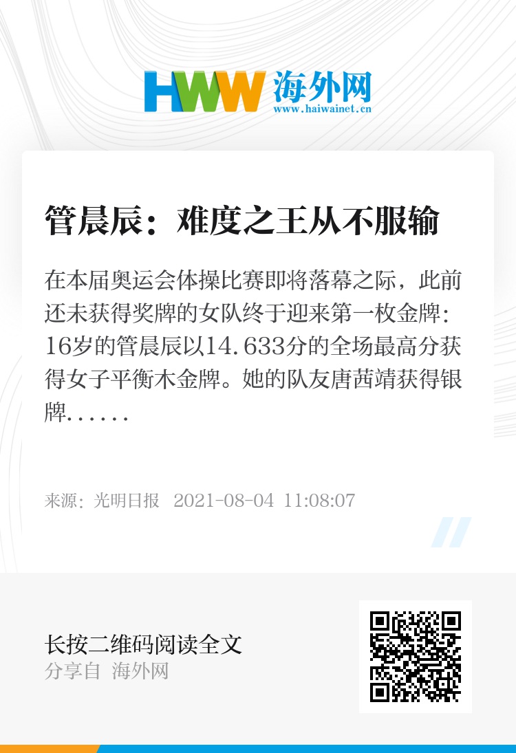 在本届奥运会体操比赛即将落幕之际,此前还未获得奖牌的女队终于迎来第一枚金牌:16岁的管晨辰以14.633分的全场最高分获得女子平衡木金牌。她的队友唐茜靖获得银牌。