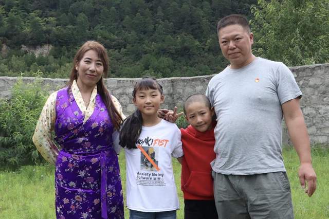 (周劲名和尼玛拉姆幸福的一家四口 央视网记者 王静远 摄)