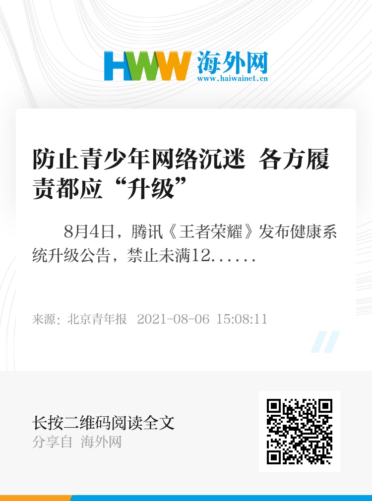 上述防止未成年人网络沉迷系统升级的公告,在公众和网络游戏市场中引起积极反响。近年来,国家和监管层面十分重视防止未成年人网络沉迷问题,出台法律、政策和采取监管措施力度不断升级。2019年10月,国家新闻出版署发布《关于防止未成年人沉迷网络游戏的通知》,对未成年人的游戏时长、游戏内充值行为以及宵禁时间等做出明确规定。今年6月1日起施行的新版《未成年人保护法》设立“网络保护”专章,就预防未成年人沉迷网络做出具体规定,为防网络沉迷工作提供了强大的法律保障。