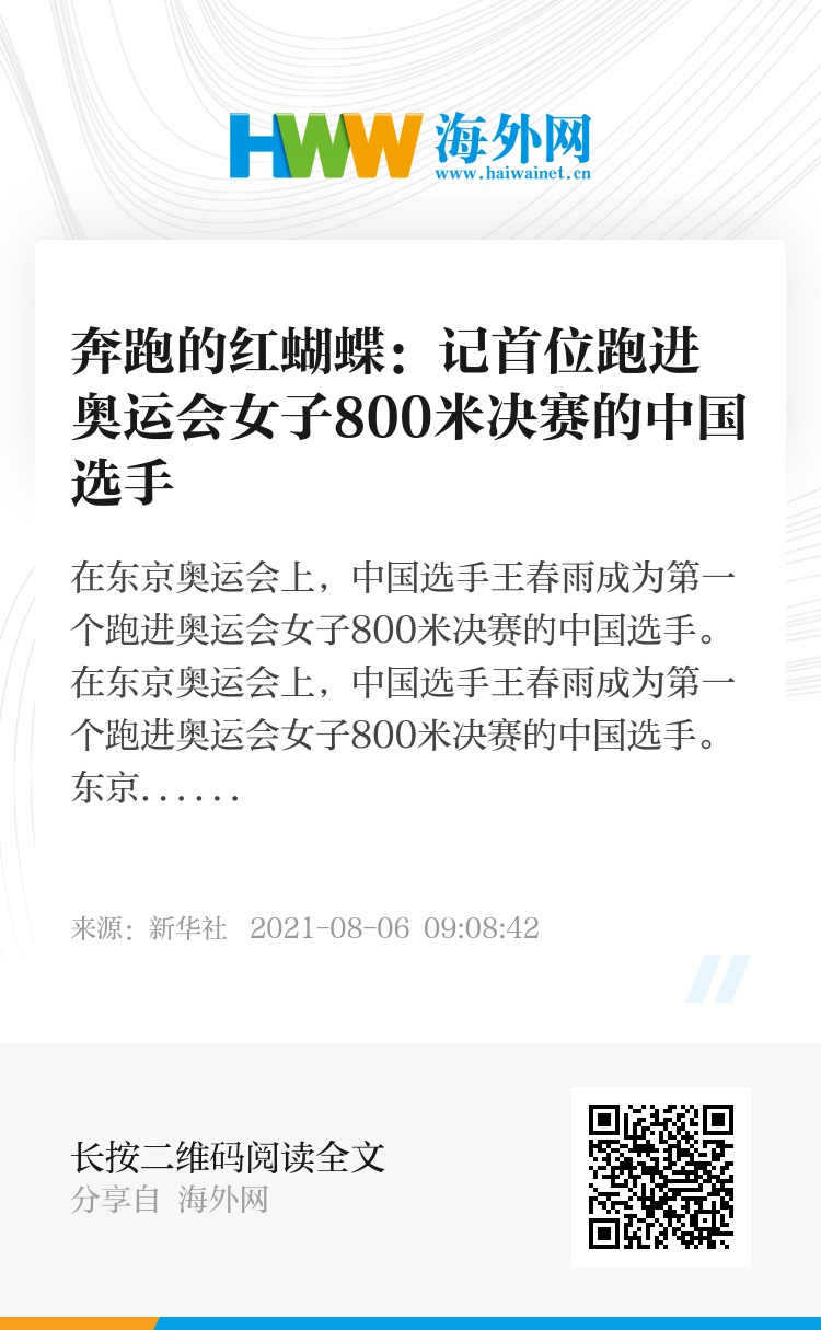 在东京奥运会上,中国选手王春雨成为第一个跑进奥运会女子800米决赛的中国选手。
