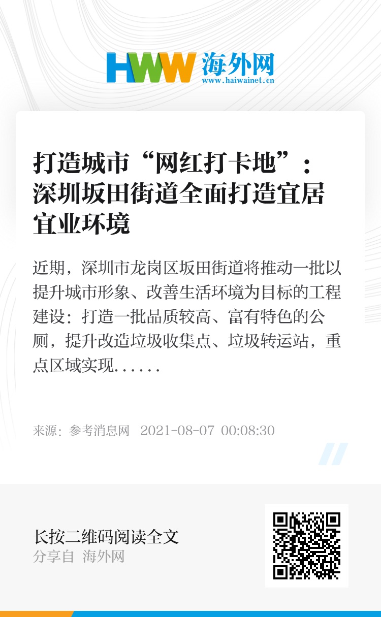 近期,深圳市龙岗区坂田街道将推动一批以提升城市形象、改善生活环境为目标的工程建设:打造一批品质较高、富有特色的公厕,提升改造垃圾收集点、垃圾转运站,重点区域实现公园格局……在这些项目的推动下,坂田街道将迎来向宜居宜业环境转型的质变。