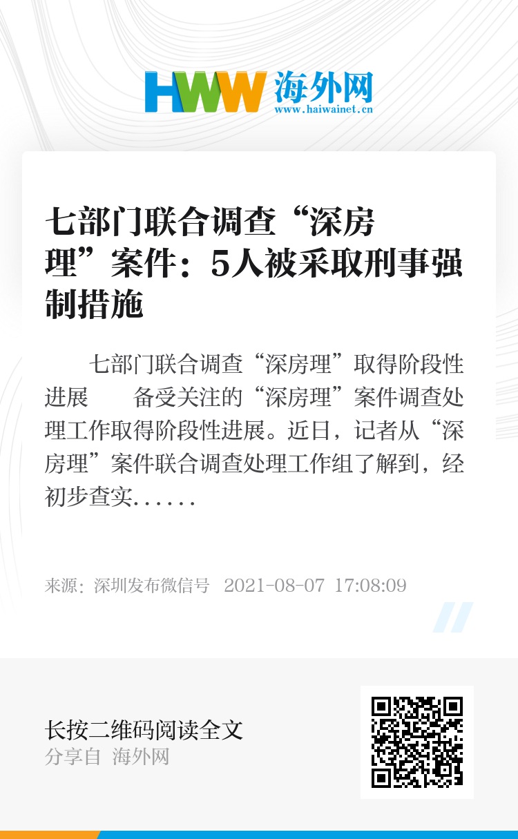 2021年4月初,网民公开举报“深房理”违法违规炒房,引发社会广泛关注。市住房和建设局、市公安局、市市场监督管理局、市地方金融监管局、市互联网信息办公室、人民银行深圳市中心支行和深圳银保监局等七部门立即成立联合调查处理工作组,迅速对举报反映的“深房理”问题全面调查,严肃处理。