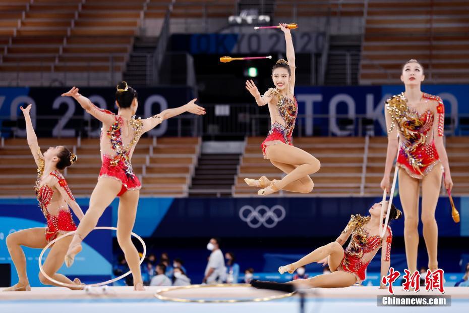 8月8日,在东京奥运会艺术体操团体全能决赛上,中国队上演“敦煌飞天”,完美演绎“中国式浪漫”!最终,中国队获得艺术体操团体全能第四名,创境外奥运会最好成绩!中新社记者 富田 摄