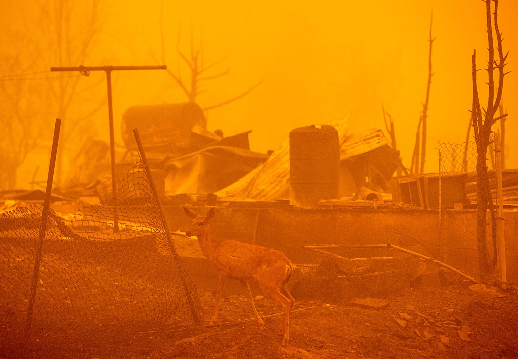这场野火已经摧毁了134座建筑,威胁到13800多座建筑。在普拉马斯郡,有100多所房屋被毁,4名居民失联。在切斯特镇,2000名居民已被疏散,而消防人员正在拼命将火势往该镇周围转移。图片来源:人民视觉
