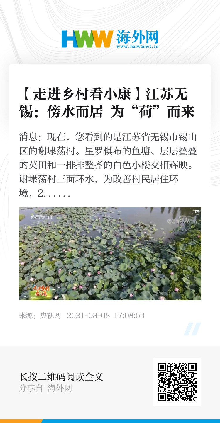 近年来,当地还依托傍水而居的地理优势,充分发展乡村旅游,打造千亩荷塘,这个曾经落后的小渔村焕发出新的活力。