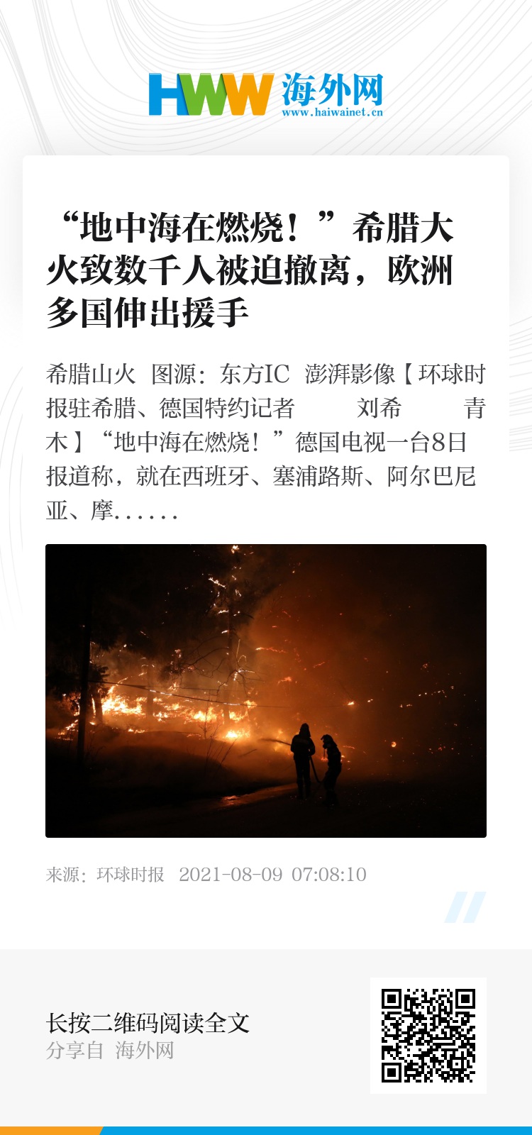 “气候变暖给欧洲带来严峻考验。”德国《明镜》周刊8日称,自7月中旬西欧出现暴雨并引发洪水后,如今南欧又出现森林大火。极端天气正在成为欧洲的大问题。