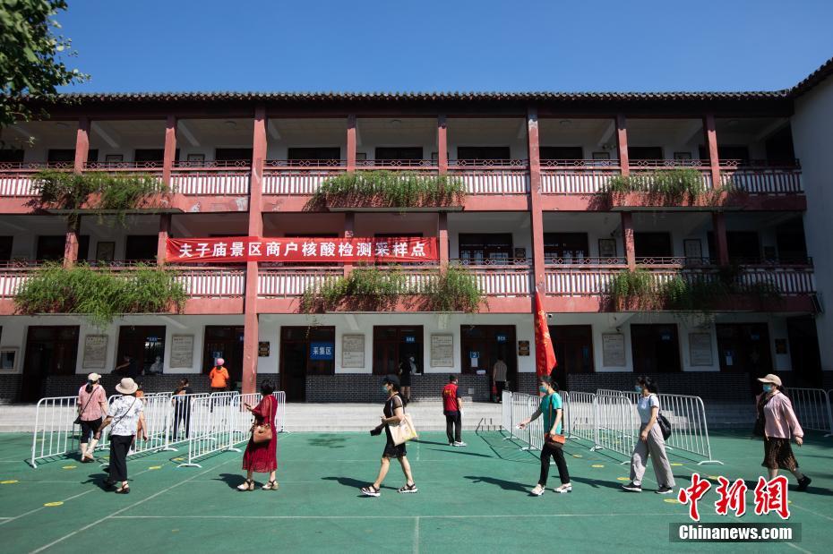 8月8日,在南京城南一处核酸检测点内,市民间隔一米排队准备进行核酸检测。当日,南京市启动第六轮部分区域大范围核酸检测。 中新社记者 泱波 摄