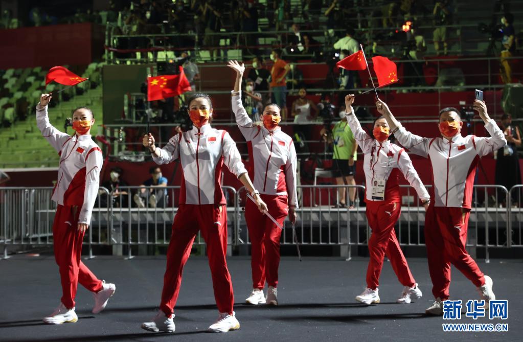 8月8日,第32届夏季奥林匹克运动会闭幕式在日本东京举行。这是中国体育代表团成员进入体育场(8月8日摄)。新华社记者 曹灿 摄