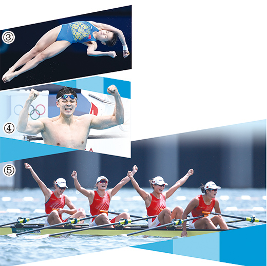 图⑤:7月28日,中国队在赛艇女子四人双桨决赛后庆祝夺冠。