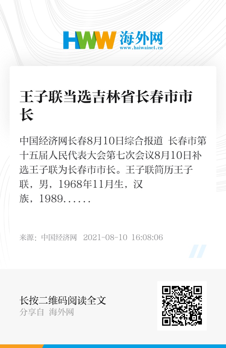 中国经济网长春8月10日综合报道 长春市第十五届人民代表大会第七次会议8月10日补选王子联为长春市市长。