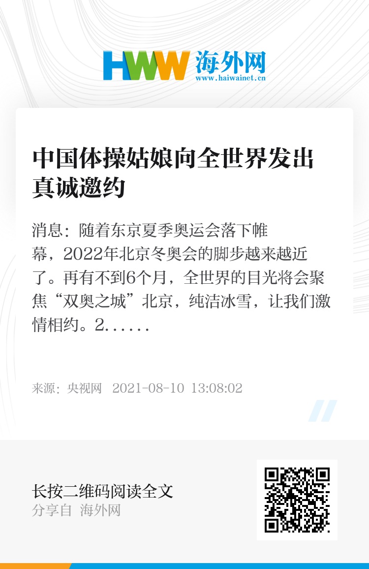 2021年8月3日,中国体操队姑娘唐茜靖向全世界发出了一份真诚的邀约。