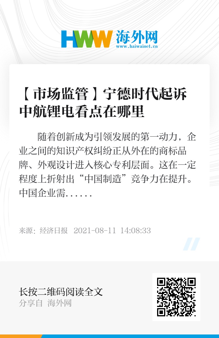 前不久,全球新能源动力电池“一哥”宁德时代把同行中航锂电告了,称中航锂电涉嫌侵犯自己的发明与实用新型专利。排名全球第七的中航锂电则表示,已向国家知识产权局提交了涉诉专利的无效宣告请求,将按法律程序应诉并不惧挑战。