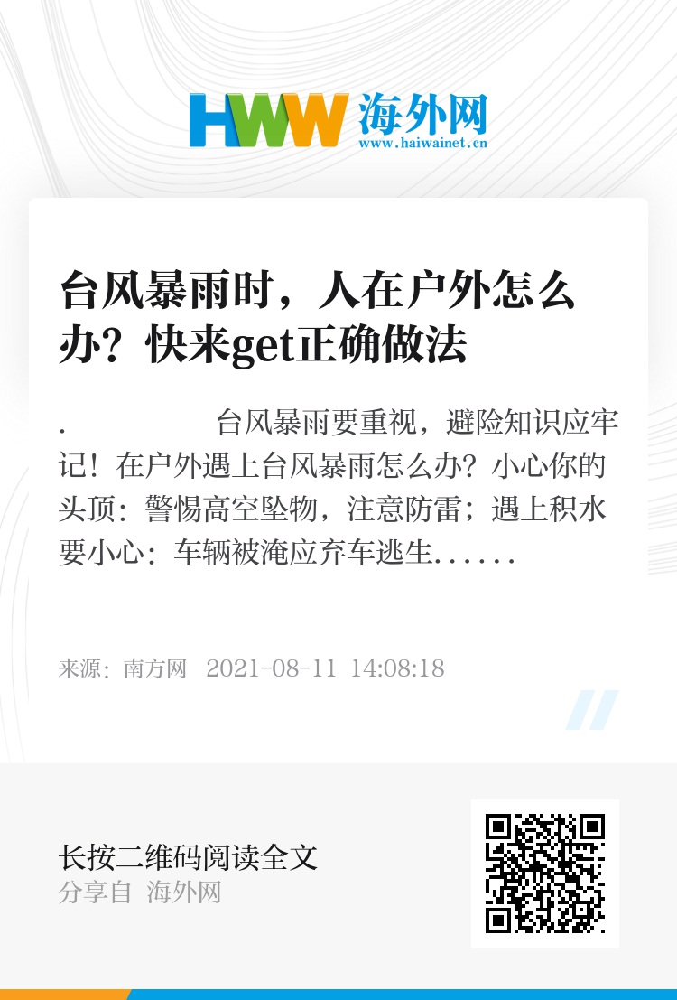 台风暴雨要重视,避险知识应牢记!在户外遇上台风暴雨怎么办?小心你的头顶:警惕高空坠物,注意防雷;遇上积水要小心:车辆被淹应弃车逃生,积水行走容易掉坑,积水导电小心被电。