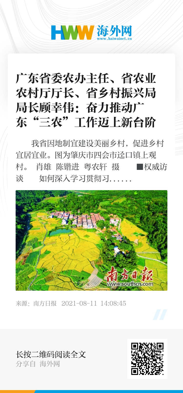 南方日报:省农业农村厅如何联系工作实际,举全党全社会之力推动乡村全面振兴?