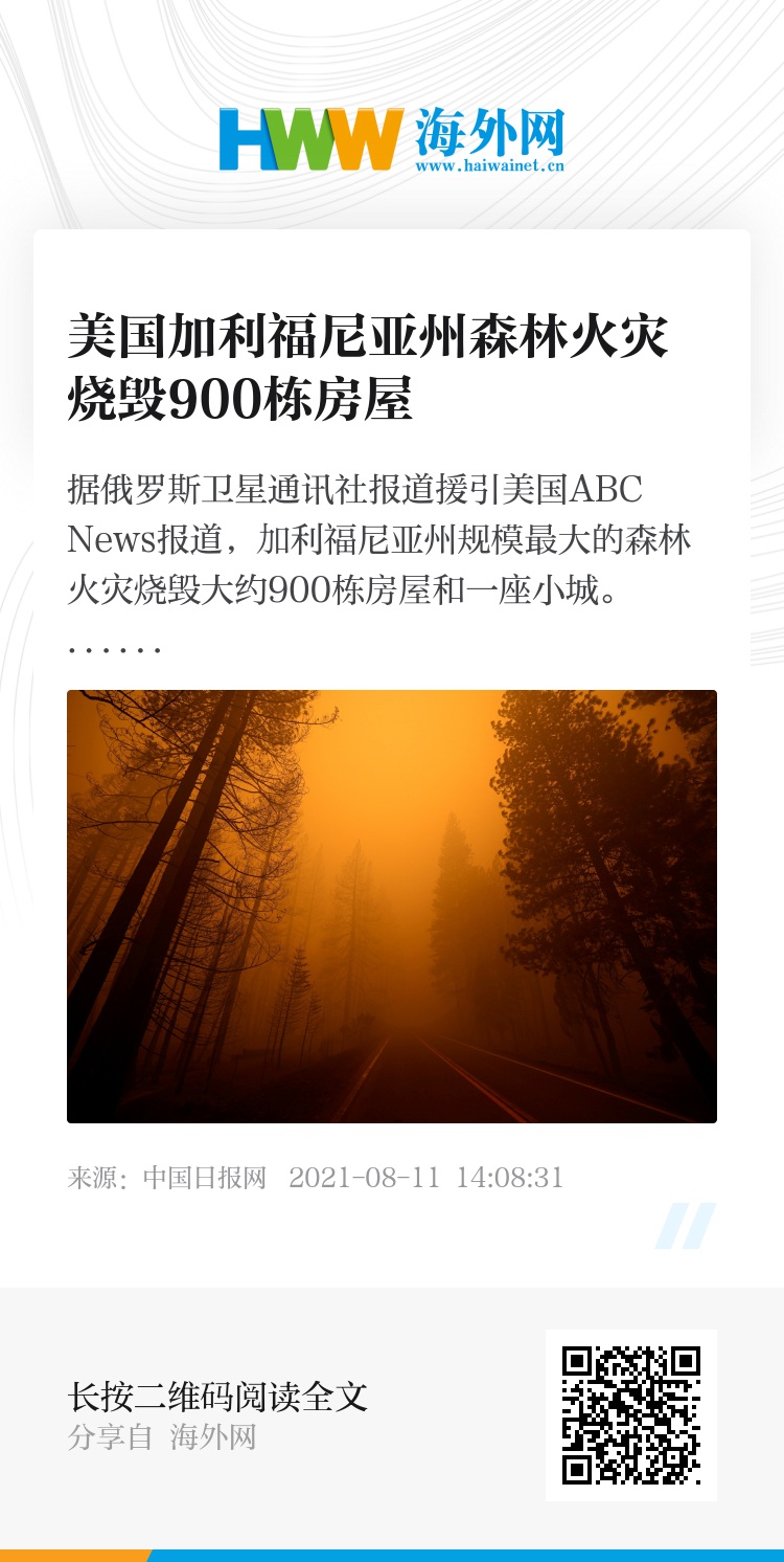 据俄罗斯卫星通讯社报道援引美国ABC News报道,加利福尼亚州规模最大的森林火灾烧毁大约900栋房屋和一座小城。