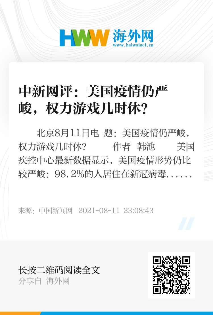 中新网北京8月11日电 题:美国疫情仍严峻,权力游戏几时休?